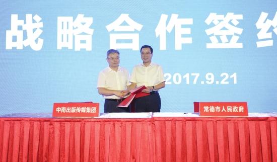9月21日,2017常德旅游節(jié)“親親常德,浪漫之旅”推介會在常德舉行。常德市人民政府副市長涂碧波與中南出版?zhèn)髅郊瘓F(tuán)股份有限公司董事、總經(jīng)理丁雙平簽署戰(zhàn)略合作協(xié)議。